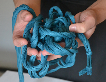 Todos os produtos desenvolvidos pela marca são únicos e feitos à mão em Portugal. Uma gama de produtos de decoração feitos com fio de malha proveniente de desperdício da indústria têxtil facilmente encontrado em Portugal.